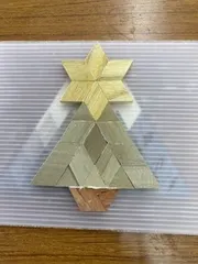 箱根寄木細工コースター体験 その③モミの木 寄木細工コースター体験の最後は、7ピースを追加購入して、22ピースで、モミの木を作りました 木片の色は、すべて天然です塗装は、何もしておりません 寄木細工の木片や配色等についての詳細は、1つ目のその①富士山の作成ページをご覧ください↓↓↓https://diy-square.ca