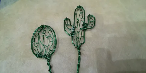 サボテンのピック ワイヤーでサボテンを作ってみました100均のワイヤーで作りました☺️ 柱サボテン🌵は見えるけど丸いサボテンは1歩間違えると、スイカみたい😅2つ並べばサボテンに見えるかしら? 違う物を作っている途中だけど、急にほかの物が作りたくなって作ってみました🤭