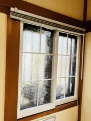 障子枠で二重窓 The和室─座布団どうぞ‼️.☆.。.:*・°.☆.。.:*みたいなのが嫌いで障子枠を洋風にしました。白く塗装して、枠のブロックを大きくなるようにノコギリでカットして、ガラス窓みたく! 和紙じゃなくて半透明のプラスチックを貼り付け冬場の寒さ軽減されることを期待出来そ