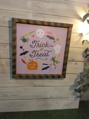 フレーム付きミニサインボード😆🔨🎨 今日は、娘と息子を連れてフレーム付サインボード作りをしてきました😉🌼 娘、息子ともに塗り塗り頑張ってくれました😄🎨私は、細かいところのステンシルをしてなんとか完成😓今月末ハロウィン🎃なので、飾りたいと思います😄💕 スタッフの皆さん、ありがとうございました😄💕