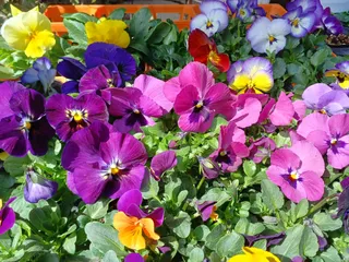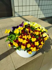 おつとめ品のビオラ 昨年、10月にカインズ青梅店で購入した、「おつとめ品」のビオラを切り戻しして寄植えにしました。元気に沢山の「花」が開花してくれました。とても嬉しい😆!