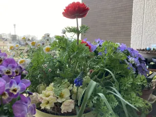 昨年、10月にカインズ青梅店で購入した、「おつとめ品」のビオラを切り戻しして寄植えにしました。元気に沢山の「花」が開花してくれました。とても嬉しい😆!