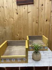 高さ2通りのフードテーブル② こちらはチワワのもこのです。B&Bではないのでステンシルがいつものお店にある塗料のみだったので今度は好きな色を待っていこうと思ってます💕
