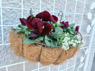 深い味わいのあるステキな色ですね✨ パンジーもビオラも、ゴマ粒より小さい種ですよね、こんなに立派に育って🎵ハンギングの寄せ植えのバランスもステキ💐 田舎バンザイ🙌(ウチもですよ😆)
