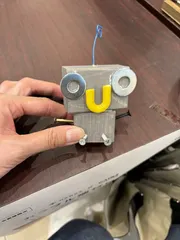 端材ロボット作ってきました! 端材にはありがたいことに色がもう塗ってある(^^) ピンク、グリーン、グレーの3色から選びます! 私はグレーをチョイス! そして、直感でビスだのワッシャーだの選び黙々と貼り付ける! 頭には、クリップを伸ばしたのを付けたら