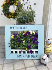 スタンド型フラワーフレーム フラワースタンド💐作ってきました🤭ビオラのフレームにピッタリでした。ステンシルもプラスして、素敵に出来たかなって思います。