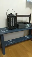 『ランタン風木製ケース』 以前作った『カフェ板ロングベンチ』『ガーデントレイ』と共にパチリ📸 まずまず上手にできたぞ、と喜んでいたら、一面向きを間違えて取り付けてて、タッカー打った面が表に…😱❗全然気付かなかった😓 皆さん書いてる通り塗装色の制限があり、しかも単色塗りしか選べなかったのはちょっと残念でした