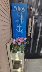 玄関に立て掛けました💕海の泡飛沫をイメージして塗装は青色、白で水玉を入れました🌊