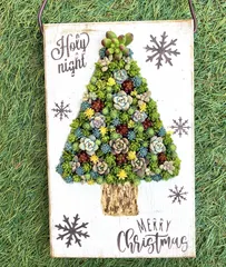 ■材料作ったクリスマスタブローの土台ネルソル鹿沼土セダムや多肉たくさん ■作り方ネルソルと鹿沼土を、1:1で混ぜてくり抜いたところに埋め込む。さあ、ここからが根気のいる作業ですひたすらチマチマ、チマチマ、チマチマ🤣バランスを見ながら土が見えなくなるまでひたすらチマチマ❣️ ■工夫