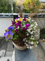 秋に粗品で手に入れたビオラとパンジーhttps://diy-square.cainz.com/announcements/k0vpu2w9xdlsbobn寄せ植えして2ヶ月、気付けば盛モリになってました。毎日見てるから分からないけど比較するとこんなに違う!特にアリッサム、白花を買ったのに紫が出てきて