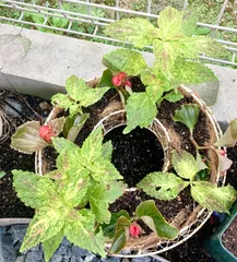 リングリースに培養土を入れ、コリウスとベゴニアを水(メネデール入り)に30分ほどつけてからそのままさし穂。半日陰にしばらく置いていたらちゃんと着いたみたい。簡単リースの出来上がり。