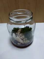 空き瓶の苔テラリウム コロナに感染してしまい、自宅療養中で、毎日暇です🤧早く、仕事に行きたい!私には、ずっと家に籠もるのは無理です😟苔が残っていたので、暇だから作ってみました。