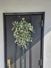 ユーカリのスワッグ作りました🎶って言うか剪定したユーカリの枝を束ねただけですか、無機質な我が家の玄関扉を華やかにしてくれてます~😆