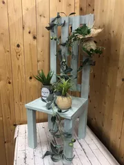 インテリアチェア 屋外用に、超撥水ペイントで仕上げました。木目を生かしながら、鮮やかに着色したダスティグリーンのペイントが、私のお気に入りになりました。
