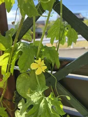 ゴーヤの花、可愛いですよねー。 うちでもパッションフルーツとゴーヤが絡み合って何が何だか…な状態です。 月桃持ってらっしゃるんですね。 私も探してるんですけどいまだに手に入りません。 10年!やっぱり難しいのかしら。