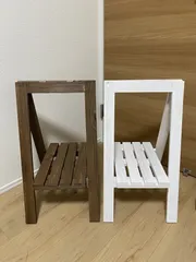 フラワースタンド✖️2 初W Sのハイテーブルの後に参加して作ったのがこちらのフラワースタンドです🤎🤍最初にウォルナットで作り次の時に超撥水ホワイトを作りました🥰外に出して使おうと作りましたが、今現在、室内におります🤭選ぶ色がほぼ決まっている感じです🤎🤍フラワースタンドは仮穴ビス止めなども程よく工程的にめちゃくちゃ大変では