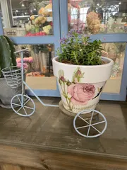 鉢をデコパージュして寄せ植え とても楽しみにしていた、デコパージュして寄せ植えを作ってきました💕たくさんある紙ナプキンの中から、ちょっと大人っぽい薔薇柄を選んでみました😊鉢は4色の中から選べて、私のは薄いピンクです。初めてのデコパージュは紙ナプキンがやぶれたり、シワになったりあまり上手にできませんでした😅それでもお花を植えると可