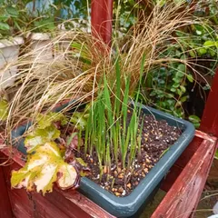 美しくない寄せ植え ・ヒューケラを初めての株分け・カレックスを半分に・イキシアの鉢が割れたのでそのまま抜き出して以上の3つを寄せ植え 半年後には素敵な寄せ植えになるでしょうか…