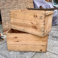 リンゴ箱のリメイク① スーパーでゲットしたリンゴ箱を何かにリメイクします(未定💦)。まずはとりあえず水洗い。"紅玉、小玉、フジ?″入ってたであろうリンゴの情報がチョーク書きされてる〜😄。そして横板には割れ止めの波釘発見。こういう小技を見つけると嬉しくなっちゃう。そして乾燥。たわしで水洗いしただけで随分キレイになりました。