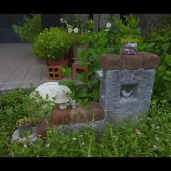 もぅ十数年前かな…モルタルとブロック・ミニレンガで、玄関前に作ったオブジェ?です。確か、薄〜いブルーっぽい色のカラーモルタルでしたが…雨風にさらされ続けて、モルタル部分はかなりボロボロ。ザラザラのグレーの壁となりました💦可愛く作ったヒサシが自慢でしたが、いつの間にかヒサシの先っぽはなくなりました😅け