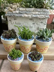 今日は珍しく 多肉の単品鉢植え🪴を作りました 普段は多品種をいーっぱい詰め込んだ 寄せ植えを作っていますが 100均の小さなテラコッタ鉢が可愛いくて それを使いたくて単品にしてみました リメイクもしてあるので 単品植えも可愛くなりました😊