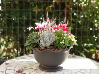 シクラメンと球根の寄せ植え 春にチューリップ🌷が咲きます