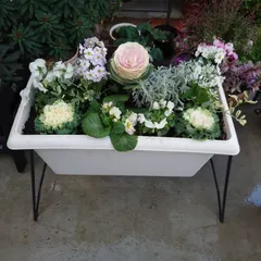 白とピンクのサクラソウ 白の葉牡丹とピンクの葉牡丹 白のビオラ 白とピンクの混ざったジュリアン シルバーリーフはモッコウギクで寄せ植えしました隙間に去年のクロッカスを仕込んでいますうまく咲いていてくれるかな〜 昨日4回目ワクチンで熱があったけど 早く作らなきゃと焦って作って なんかもひとつ