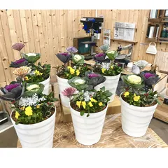 葉牡丹とビオラの寄せ植え🪴 日中「葉牡丹とビオラの寄せ植え」のGWSに参加しました🌱植え方を始め、自宅でのお世話のポイントを教えて頂き勉強になりました。今日は年内最後のGWSということで、店長さんお手製の扇のピックを一人1本ずつ頂きました✨これで、クリスマス🎄からお正月🎍まで楽しめます😊ありがとうございました。