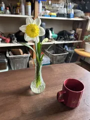 庭の水仙と 自室に庭に咲いた水仙を挿して見ましたよ😊 ささやかな至福のひと時が出来ました。あっ〜!コーヒーが旨い(^^)