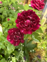 バラ バロンジロードゥラン 昨日のバロンジロードゥラン🌹昨年、カインズさんで超破格値でお迎えしました^ ^実は以前もっていたのですが、カミキリムシにやららて枯れてしまいました😓💦また出会えてとても嬉しかった😃、というバラ🌹です。濃い赤紫の花びらに白いふちどりが入る花姿が好きです😊