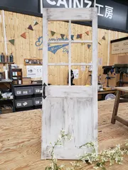 アンティーク風ドアオブジェ キャンセル待ちで参加できました🎵色見本を見て悩みながら、ホワイトにソリッドカラーのダークプラウンで汚しました。トリマーを使うのが初めてだったのですが、丁寧に教えていただき、無事加工できました👍一緒に飾るリースも作りたくなりました。とりあえず、あるもので😅アドバイザーさん、ご一緒したベテランの皆さん、