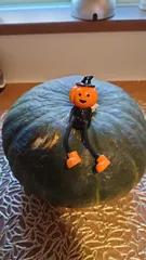 ハロウィン 近所の方に頂いたかぼちゃの上に座らせてみた🎃