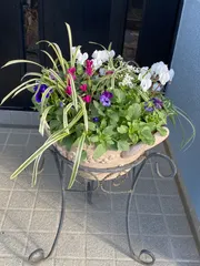 先日、🍀GreenStyle🍀さんにてハンギングバスケットの講習を受けてきました! ビオラパンジー を使ったハンギングバスケットです💐 今回もまぁるく出来ました😊