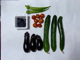 本日のきゅうり⑭ 今日のきゅうりは4本計39本 茄子はあまりならなくて太っちょを一つ