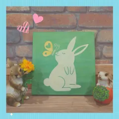 ミニサインボード【Butterfly and Bunny】🦋🐰 久しぶりのサインボード🎨🖌️今日もおひとりさまでした😅ちょっと私にとっては可愛いすぎるデザインでしたが、「それなら可愛い方に振り切ってしまえ😆❣️」ってなった結果、こうなりました🤭うさぎの後ろに咲いてる草花は、持ち込みのステンシルです💠色数、こんなに使ったの初めてかもしれません💦数えてみたら、ベース