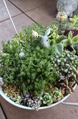 多肉植物の寄せ植えがモリモリになって♪ 春が近いからかモリモリになって、うさぎが肩まで埋もれてました笑寄せ植えしたての画像です