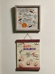 ハロウィン ミニサインボード with タペストリー ハロウィンのミニサインボード、基本に忠実に作りました タペストリーと一緒に飾るのもいいかなぁ。。。