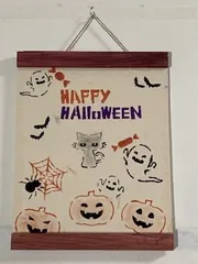 ハロウィン用タペストリー 少し早いですが、ハロウィン用タペストリーを作りました 材料 キャンバス布 ステンシル ペンテル布用アクリル絵の具 木材塗料 ソリッドカラー バーガンディ 麻紐 ガンタッカーステンシルの配置 バランス考えるのは結構たのしい。。。