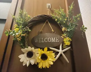 さよなら〜👋8月🌻🌻 夏の間に玄関ドアに飾っていたひまわりリース🌻明日から9月になるので、そろそろ保管体制入ります🫡 かなり前に作成で結構くたびれてきています😅ちょっと寂しいしそろそろアレンジ時。今やったらモリモリリースになる予感🤭なので来年ちょっとパワーアップさせようと思います🎵 夏の次は秋🍂...