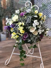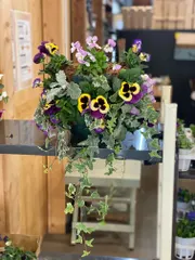 今日の午後からのGWSハンギングバスケットでした😊 パンジーとビオラ色を選ぶ時に、メインのパンジーを白と紫で決めたけど何となく他の色とのバランスに迷って 最終的には黄色と紫のパンジーに変更 結果、まとまった感じになったので良かったかな🥰