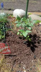 ミニトマト植えてみた☺️ 庭の一角に肥料を入れてから1週間ほど経ったのでミニトマトを植えました🍅これからの成長が楽しみです☺️