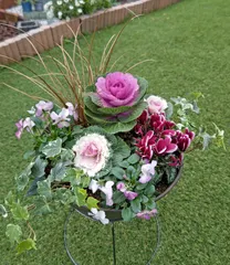 葉牡丹シリーズ🤣🤣 🔰あるあるなのか?葉牡丹にハマってしまい買いまくってしまいました(まだまだ有ります💦)ビオラやシクラメン、カレックス、ヘデラで和洋折衷な仕上がりになってしまいました😅気が早いお正月風ですね……🙄