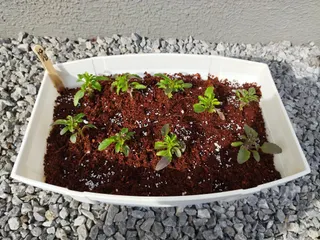 8月終わりに種まきしたビオラ1号がやっと咲きました。🎵😍🎵 4年間タネを冷蔵庫で保管していた物です。 家で取ったタネなので、親株と同じ花が咲くとは限らないから、これからどんな色が咲くか楽しみです。😊