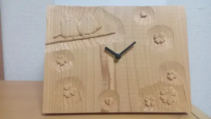 シマエナガの時計🐤🐥 ■作品内容カインズさんの木っ端から時計を作りました🐥シマエナガなどを彫刻刀で彫りました☺️■こだわりポイント裏側の時計を入れるところも彫刻刀で彫ったので大変でした💦あえて数字は入れないで、お気に入りのモチーフを彫ってみました🐥木のぬくもりが感じられる優しい感じがお気に入りです💕
