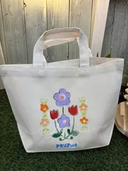 アデリアレトロなトートバッグ トートバッグ5個目 こちらも紫色を基本にチューリップ🌷は赤くしましたスタッフさんお世話になりました