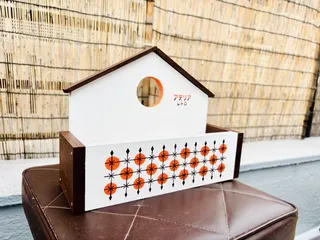 2026年の初WSで、アデリアです。フェンス可愛いです。 やはり私も定番が欲しくて塗りました。 ただ、見本と違い持ち込みのオレンジとフェンスの色はB&Bの塗料使用との事でチョコレートカラーで塗りました。 次の日、やっぱり窓を塗り替えました。少しだけアレンジしました。