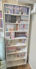 NEW 隙間に合わせた本棚☆ ■作品内容ぴったりサイズの棚が見つからなかったので自分で作りました!\(^o^)/■こだわりポイント既存の本棚(アイリス製:画像左)と壁との間にちょうど良いサイズの棚が見つからず、せっかくDIY覚えたし作っちゃえということで(笑)。本のサイズに合わせて棚板の間隔を決め、奥行きも2冊入る長さにしたので