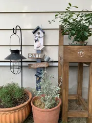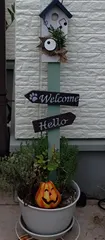 かわいいガーデンサインピックができましたね✨✨ ワイヤーのwelcome文字、アクセントになっていいですね♪ アレンジがいろいろできるので、また作りたくなりますよね〜😊
