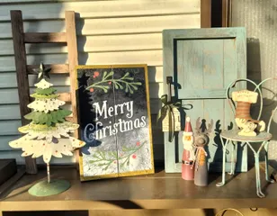 ワークショップ作品コラボディスプレイ🎄 タイニーサインボード門扉に飾る予定なのですがクリスマス飾りまだ完了しないのでとりあえず雨に当たらない軒下に置いてみましたMerryChristmas🎄気分になりました