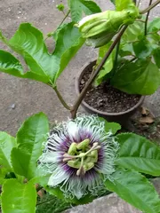 パッションフルーツの花 19個目 19個目のお花が咲いたので人工受粉しました😊🎶